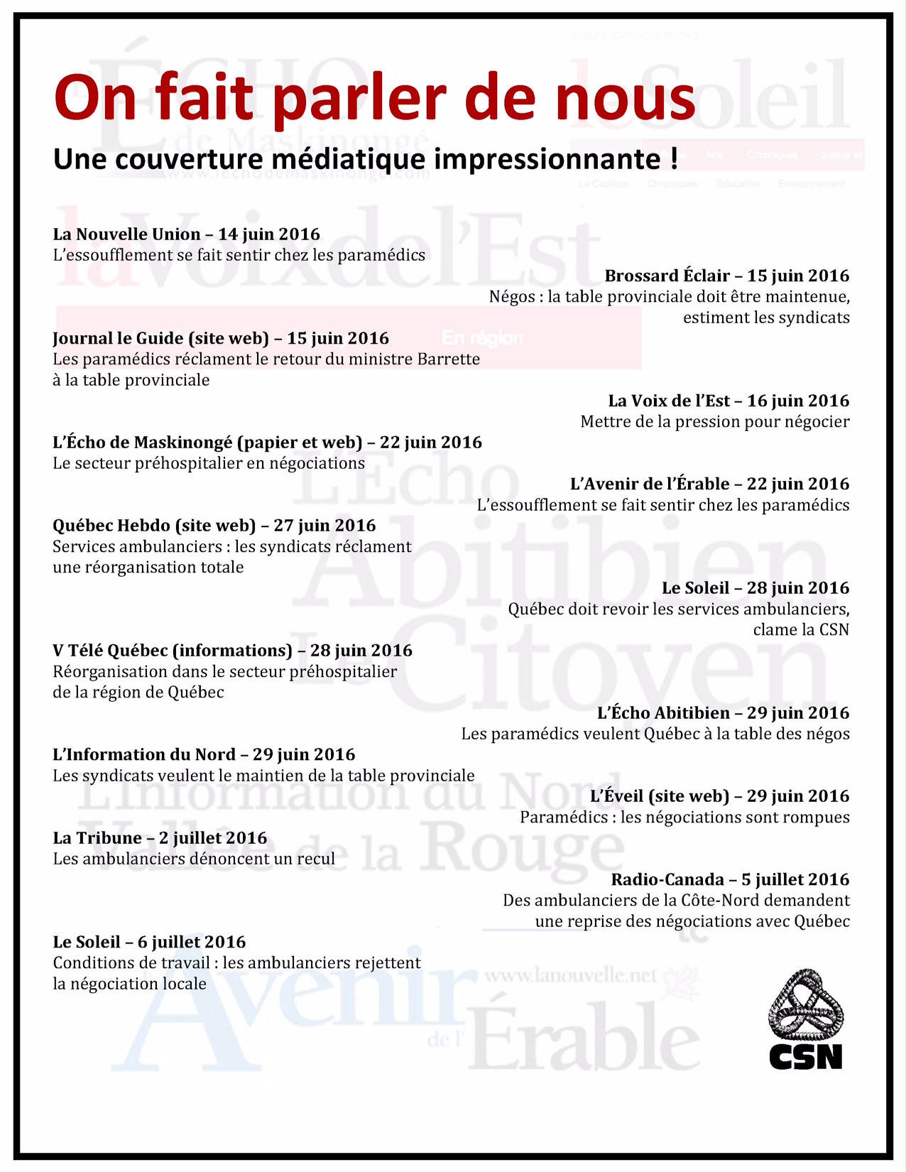 L’exécutif a donc nommé 2 personnes par intérim jusqu’à la prochaine élection générale, au printemps 2017, le tout en conformité avec nos statuts et règlements (article 47,2). Il s’agit de M. Dany Chamberland comme secrétaire-trésorier et M. Mathieu Lacombe comme V.P. info-mobilisation.